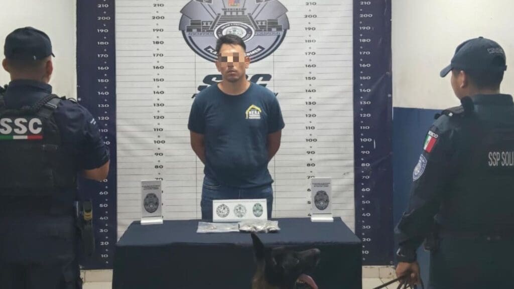 Playa del Carmen, Quintana Roo, a 04 de septiembre de 2025.- En el marco de las acciones de vigilancia y prevención, elementos de la Secretaría de Seguridad Ciudadana de Playa del Carmen aseguraron a un hombre señalado por su presunta participación en delitos contra la salud en el fraccionamiento Villas del Sol.