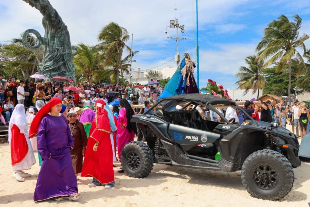 Playa del Carmen, Quintana Roo, 3 de abril de 2026.– Como parte de las acciones impulsadas por el Gobierno de Playa del Carmen que encabeza la presidenta municipal Estefanía Mercado, la Secretaría de Seguridad Ciudadana desplegó un operativo de vigilancia y apoyo en playas, zonas turísticas y durante las representaciones del Vía Crucis realizadas este Viernes Santo, en el marco del Plan de Acción Semana Santa 2026.